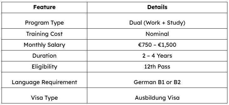 This system plays a major role in Germany’s skilled workforce and is open to international students, including Indians.